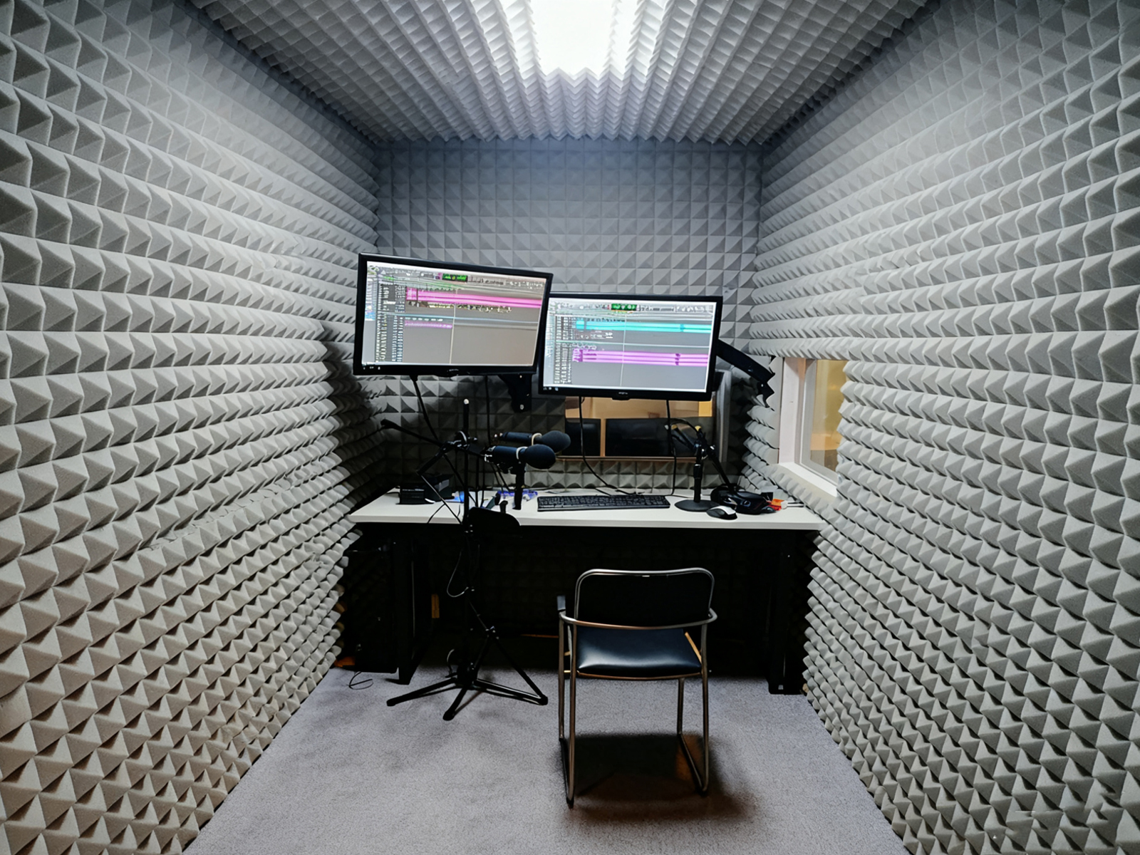 A small, acoustically optimized space specifically tailored for capturing pristine vocal performances. Built to strict international acoustic standards, it features fully modular sound absorption treatments that effectively isolate noise, eliminate standing waves, and reduce reflection interference, making it ideal for dialogue and voice-over recordings.